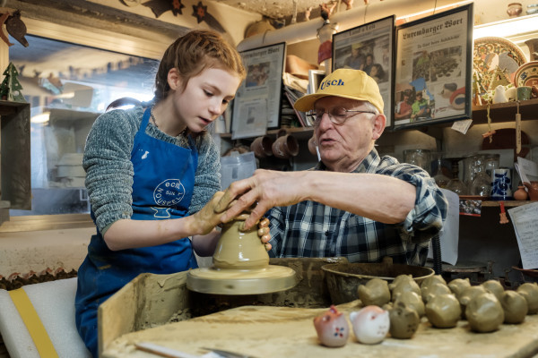 After a short demonstration, everyone can lend a hand and create their own « Péckvillchen » as they please. Important: there is strength in peace - you can only pick up the self-made « Péckvillchen » after the firing process has been completed. (about 2 weeks later)